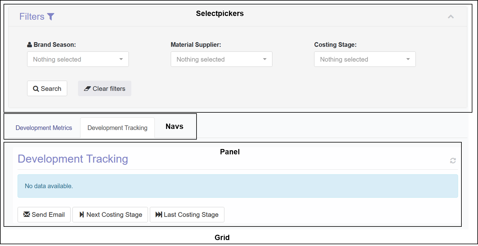 A grid is a container for selectpickers and panels (which can be linked to navs):